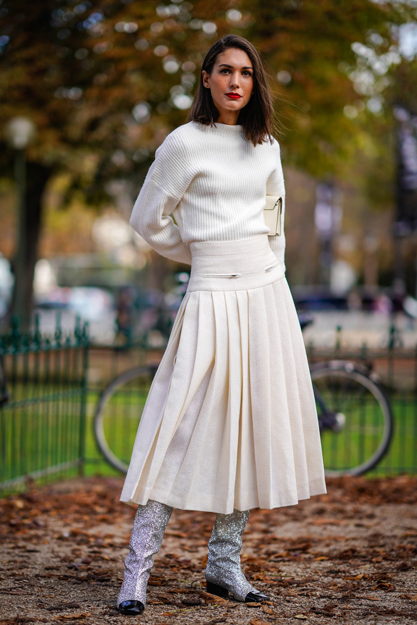 White and off-white shoes. Wearing white during the cold season is perfectly acceptable and this year, completely desirable. Go for a touch of white with your shoes or all the way monochromatic with your whole outfit.