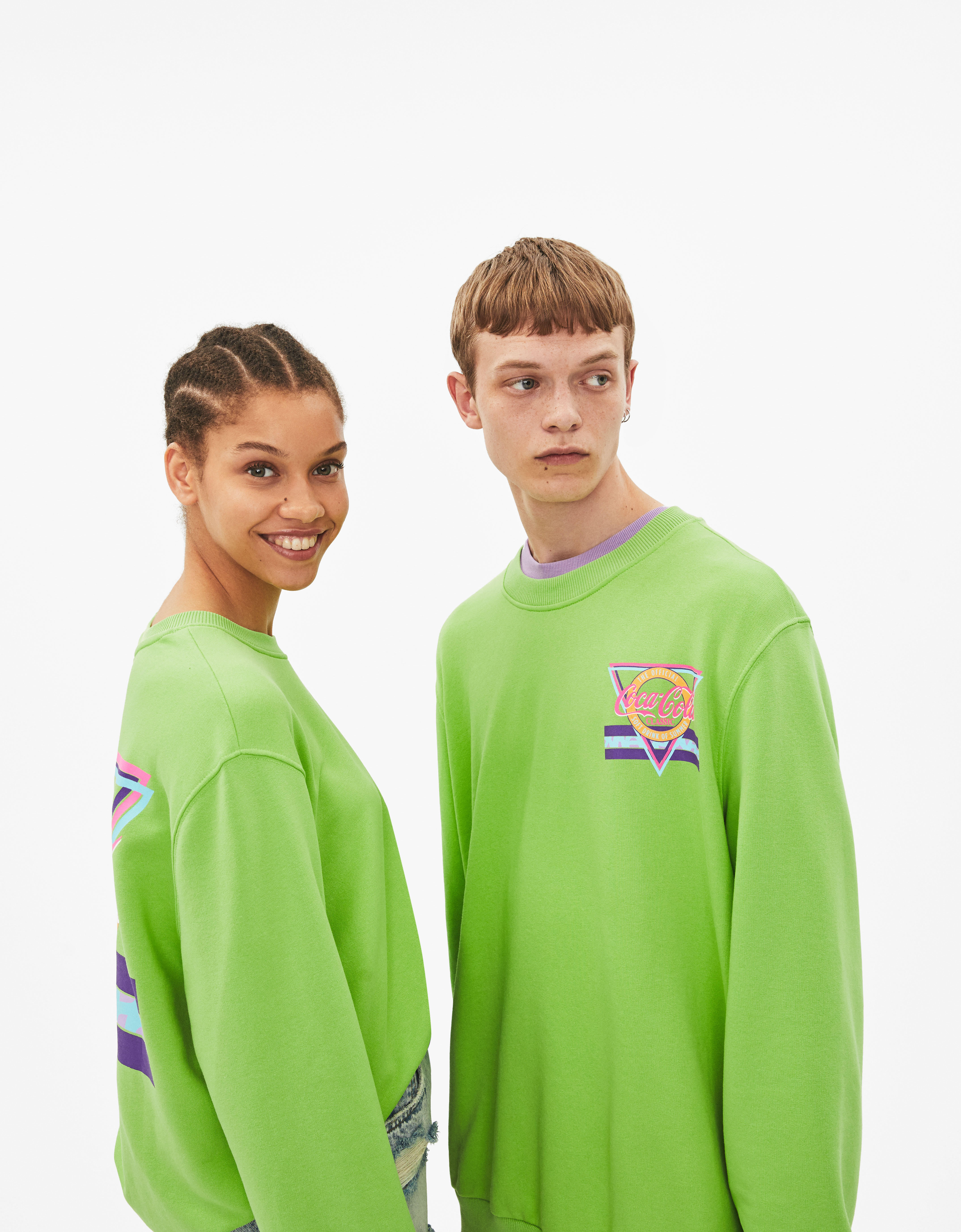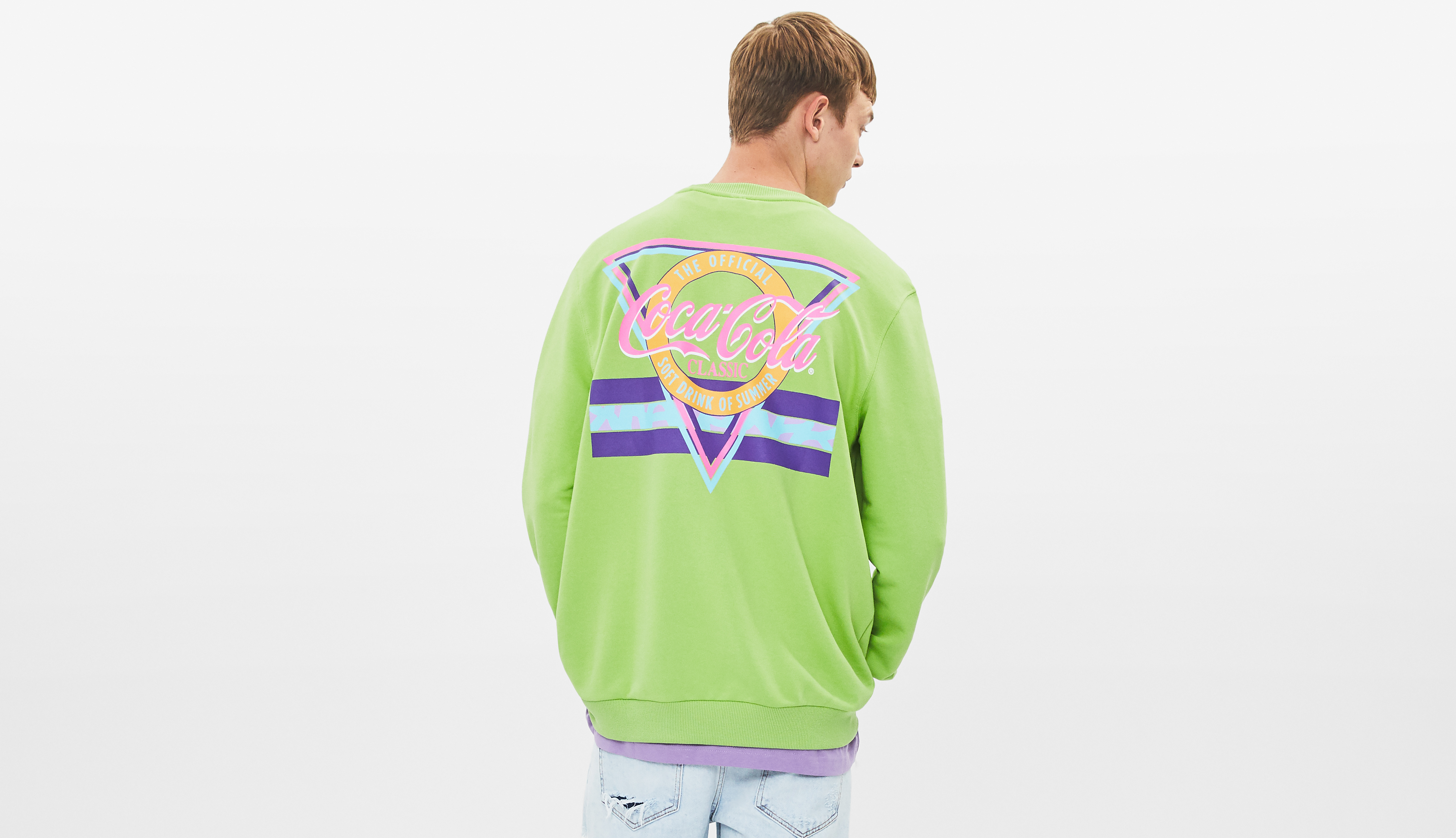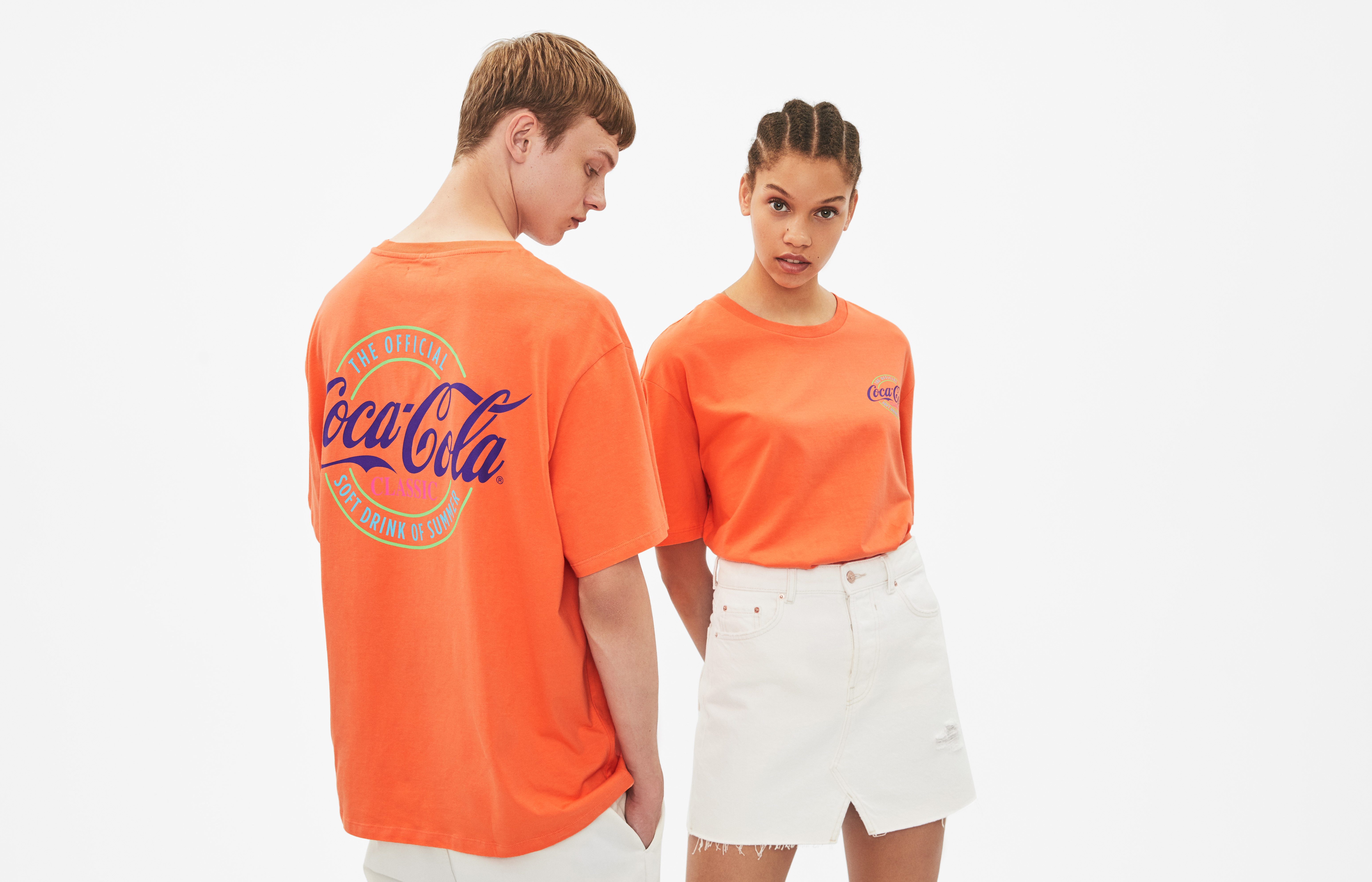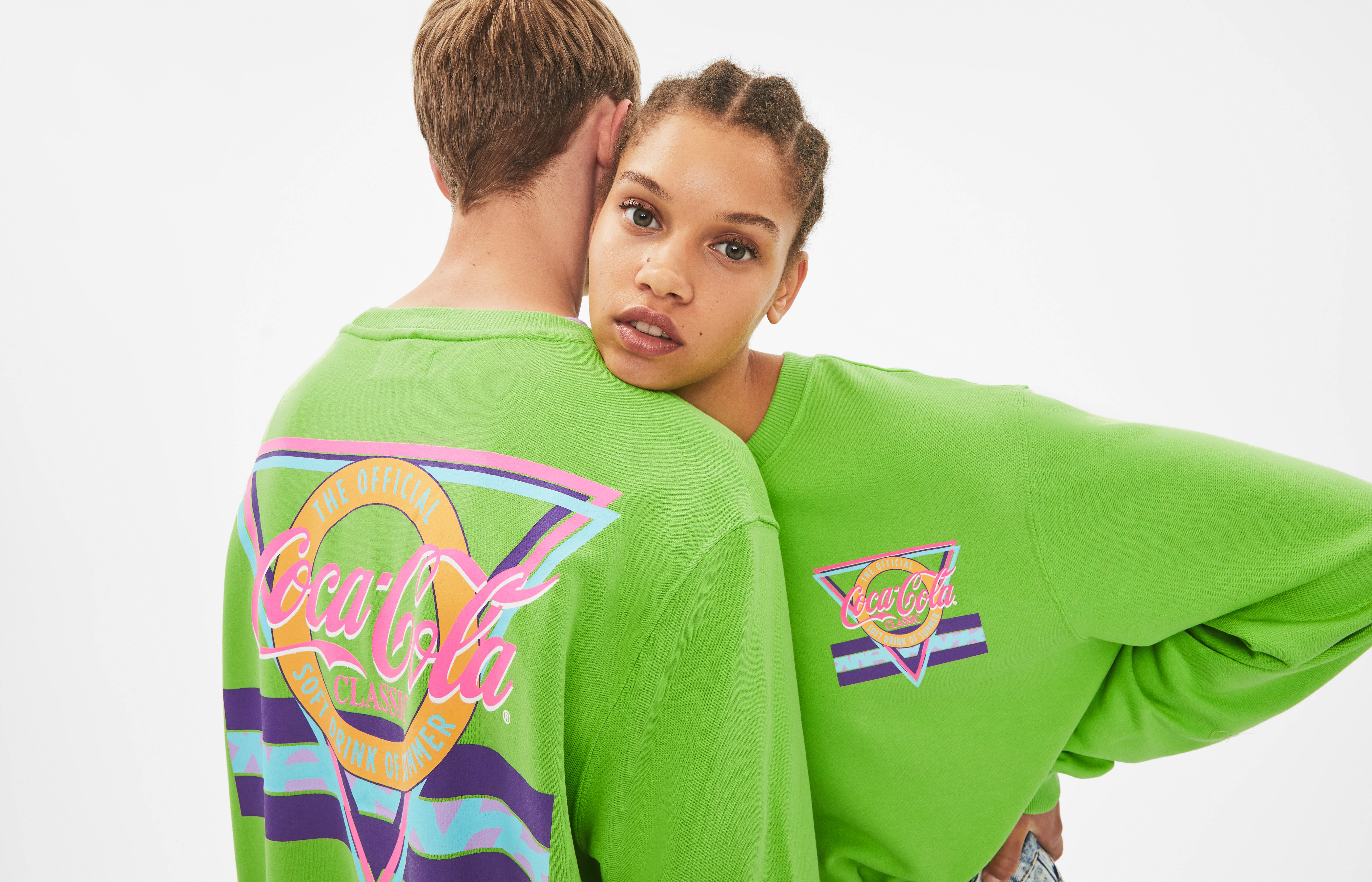 Esta marca de Inditex, lanza una nueva cápsula con Coca-Cola y hace un guiño a los 90. La cápsula se compone de tres prendas unisex, dos camisetas de manga corta, en blanco con estampado “all over” y la otra de color naranja con una estampación muy noventera. La sudadera es de una tonalidad verde intensa, estampada tanto por detrás como por delante, con un print colorido muy característico de la década.Las prendas, de edición limitada, estarán a la venta en la mayoría de países a partir del 5 de julio.