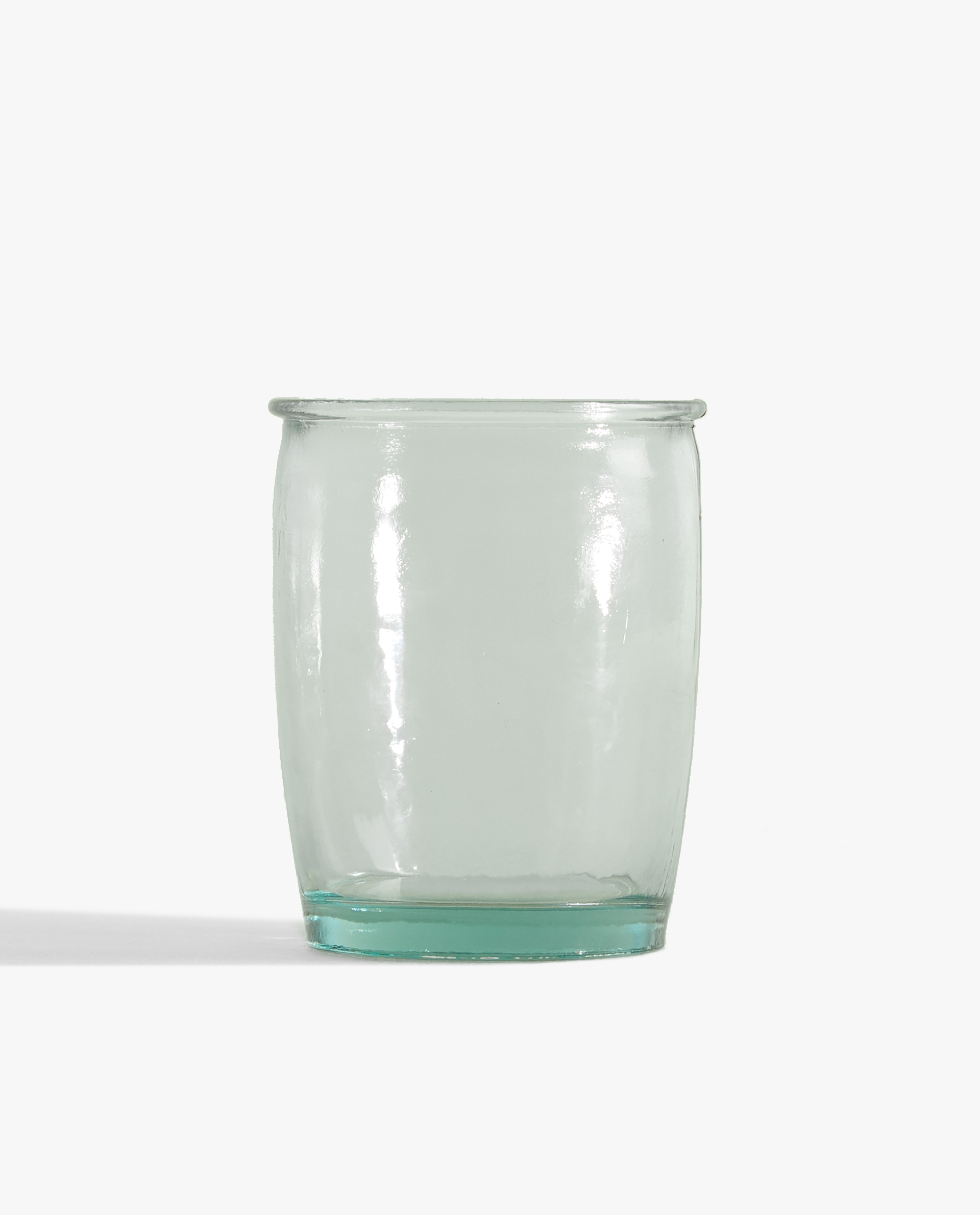 El vidrio reciclado proviene de vidrio reutilizado, la producción de este tipo de vidrio tiene un impacto menor en el medioambiente y consume menos energía, menos agua y menos recursos naturales. En esta colección encontramos botellas decorativas, una vajilla, cristalería y un set de baño. El vidrio utilizado para la creación de estos productos es el resultado de la fundición de diferentes vidrios que ya han sido utilizados previamente. Para este proceso, el vidrio se fusiona a una temperatura menor, por lo que requiere menos energía y se reduce además la creación de CO2. El vidrio reciclado no es tan puro como en su primera fusión, por eso los productos elaborados en este material tienen una forma orgánica muy característica.